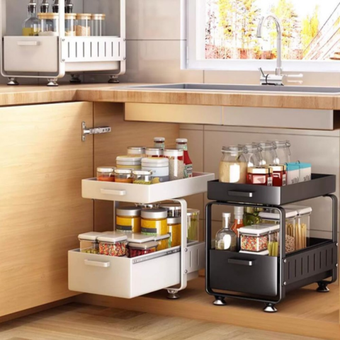 Girá la gaveta, tomá lo que necesitás y cerrá: así de simple. Todo queda a la vista y a mano, sin revolver alacenas. Ahorra espacio en la mesada y deja la cocina siempre prolija y armoniosa. Ideal para casa, quincho o motorhome.